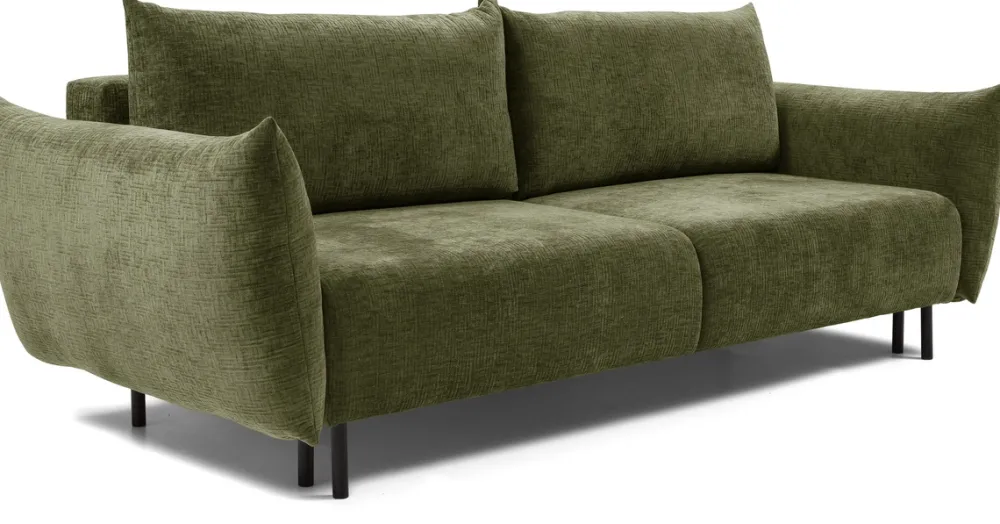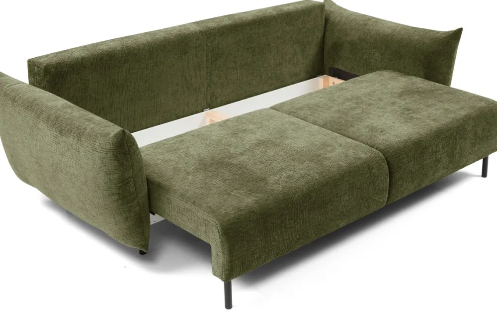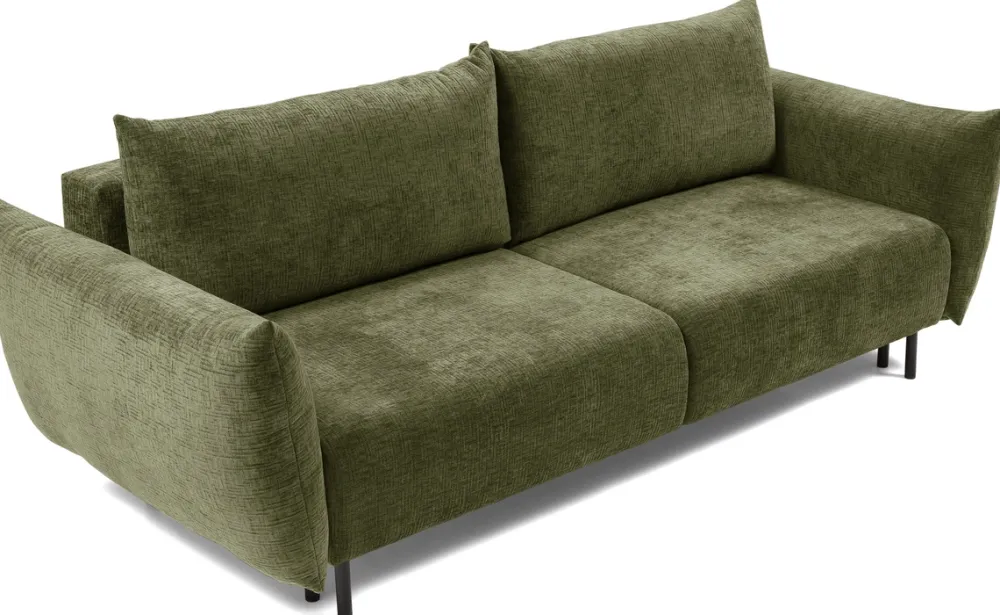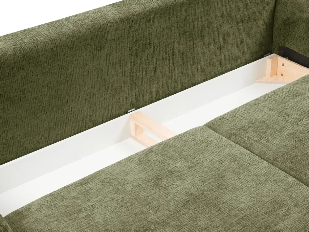 Dla dodatkowej wygody, sofa została zaprojektowana z myślą o przechowywaniu. Wbudowany pojemnik na pościel pozwala na łatwe i estetyczne przechowanie pościeli, koców czy poduszek, zapewniając porządek i łatwy dostęp w każdej sytuacji.