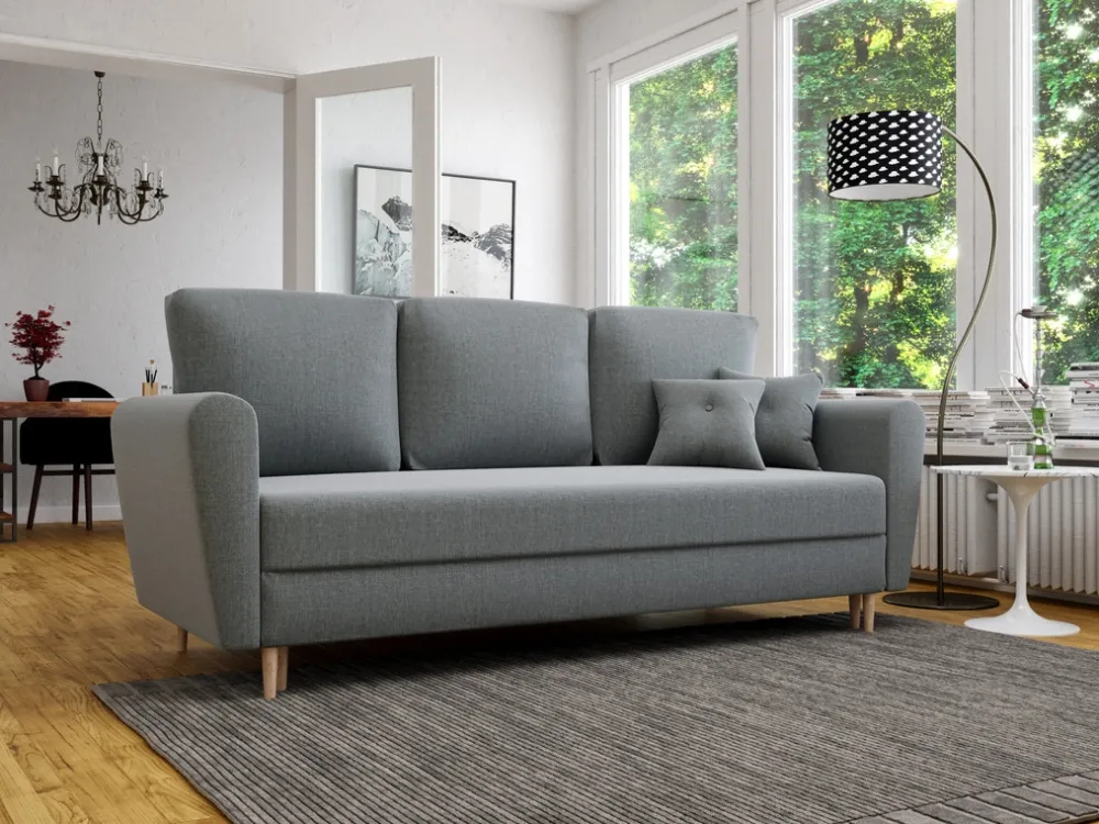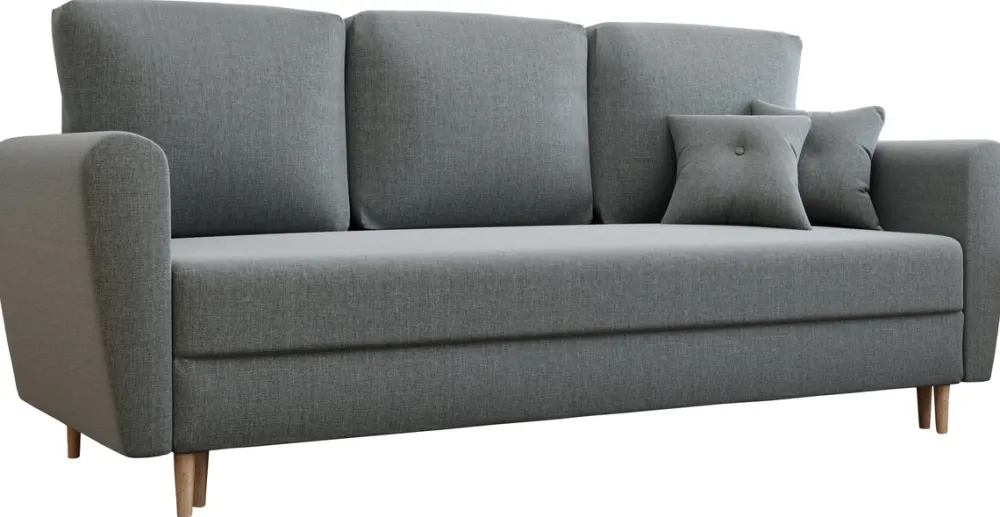 Kanapa posiada również głęboki pojemnik na pościel, który oferuje dodatkową przestrzeń do przechowywania, pozwalając na utrzymanie porządku i organizacji w Twoim salonie. Jest to szczególnie przydatne w mniejszych przestrzeniach, gdzie każdy centymetr ma znaczenie.