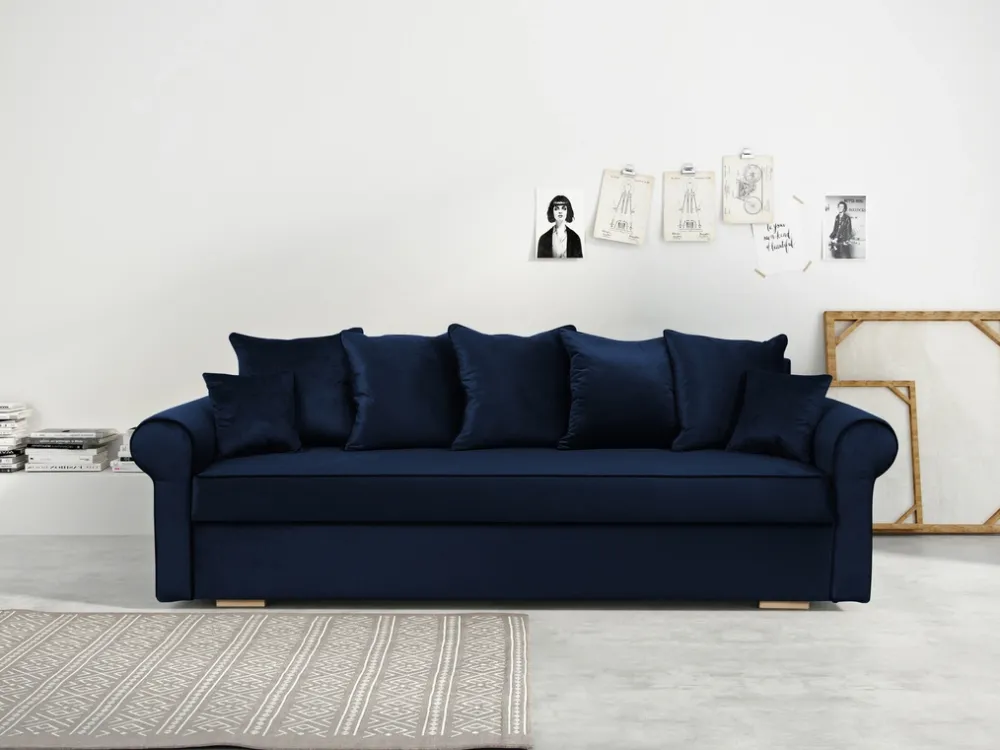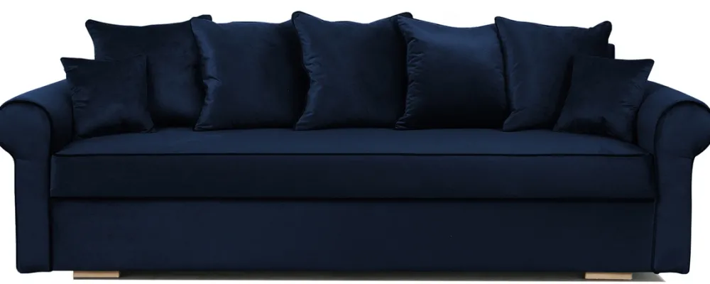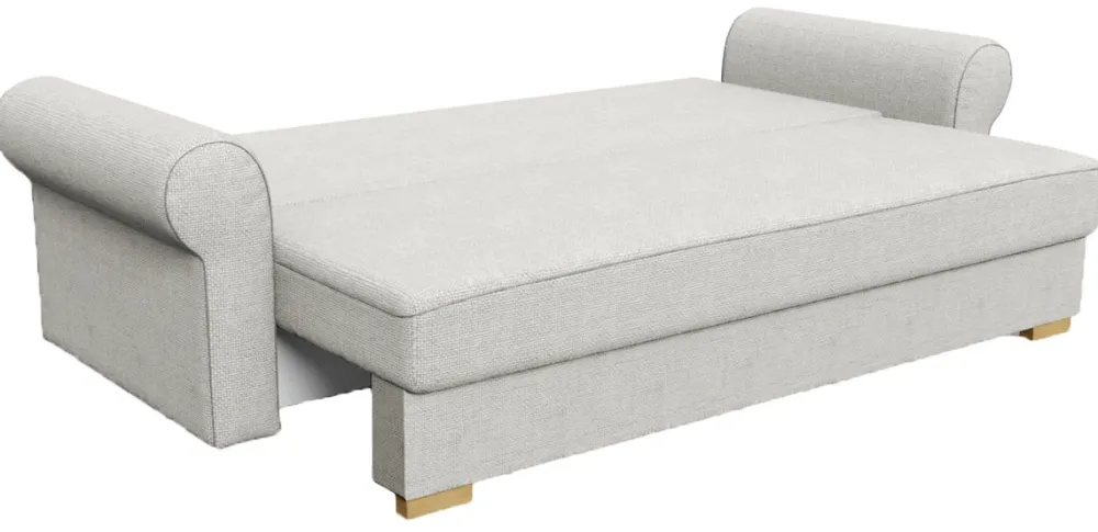 - Trzyosobowa kanapa rozkładana MALLORCA. Kanapa do salonu posiada drewniane nóżki, głęboki pojemnik na pościel, a także pięć dużych poduch oparciowych. Kanapa rozkłada się za pomocą automatu DL.