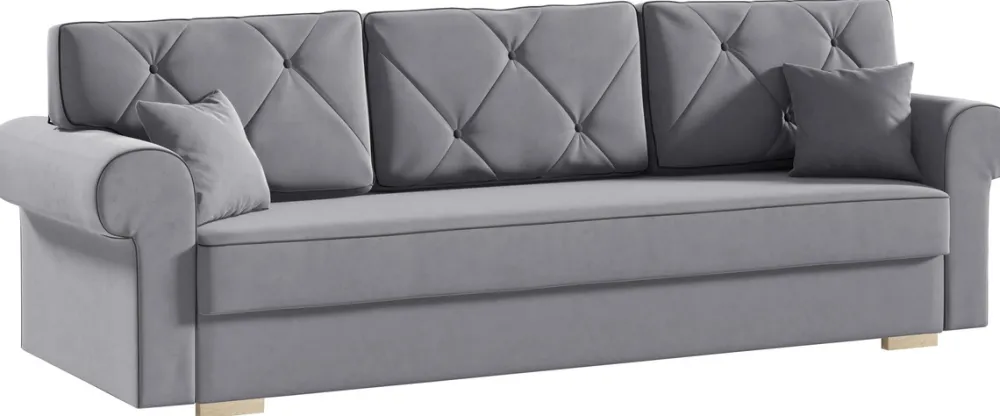 - Sofa z funkcją spania widoczna w ofercie została wykonana w tkaninie Monolith 84, a jej ozdobna lamówka w tkaninie Monolith 97. Tkaniny te są łatwe w pielęgnacji i utrzymaniu czystości. Cechują się trwałością, a także odpornością na plamy i zabrudzenia, co ułatwia jej codzienne czyszczenie. W przypadku mniejszych zabrudzeń wystarczy zazwyczaj delikatne oczyszczenie wodą z łagodnym detergentem.