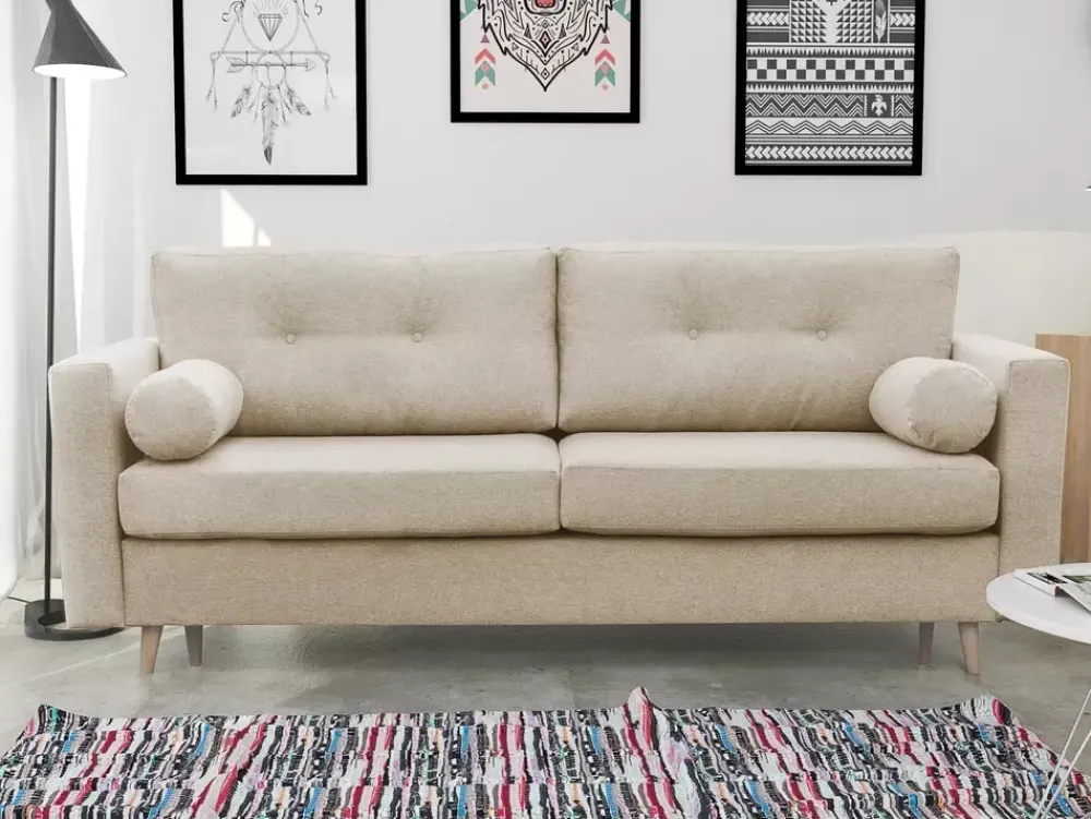 - Rozkładana kanapa SCENDI to propozycja do salonu wnosząca prostą formę oraz skandynawski styl. Wyposażona w sprężyny bonell oraz dwie duże poduchy zapewni wygodny odpoczynek, a dwie małe poduszki w kształcie wałków oraz drewniane nóżki podkreślą design.