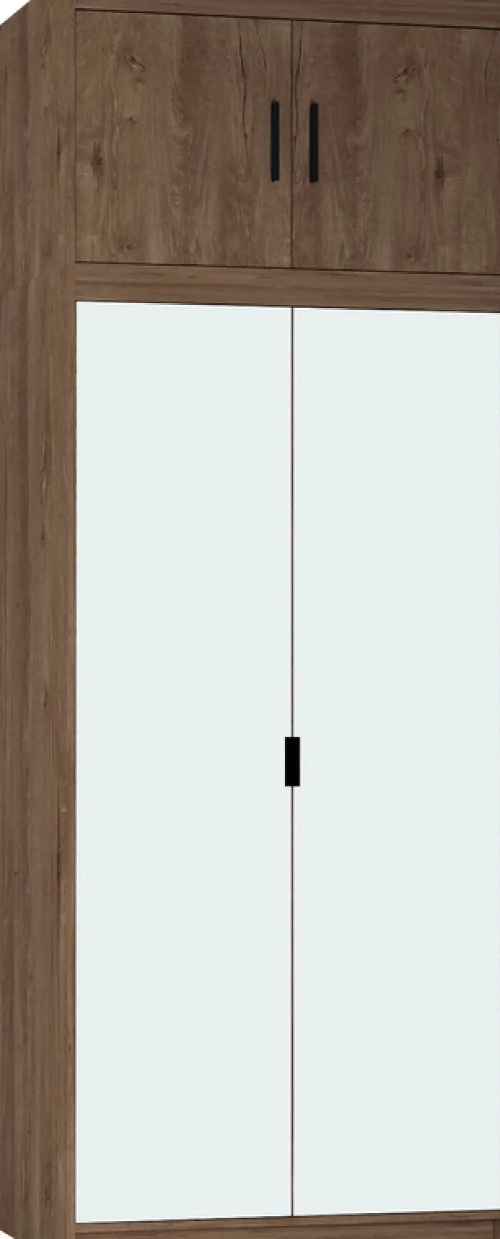 Zestaw szafa z lustrem KUBA i dedykowana nadstawka to idealne rozwiązanie do nowoczesnych i klasycznych wnętrz. Funkcjonalność, styl i doskonała organizacja przestrzeni – to wszystko otrzymujesz w eleganckim wykończeniu dąb lefkas z kontrastującymi czarnymi uchwytami. Lustro na froncie optycznie powiększa pomieszczenie, a nadstawka oferuje dodatkowe miejsce bez zajmowania przestrzeni podłogowej.