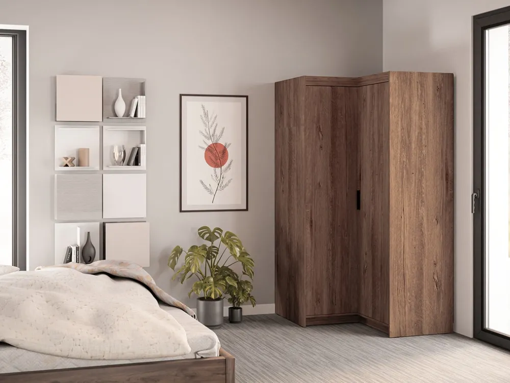 Meble Dla Dzieci>Lempert Szafa narożna modułowa dwudrzwiowa z półkami i drążkiem 98×98 cm KUBA dąb lefkas