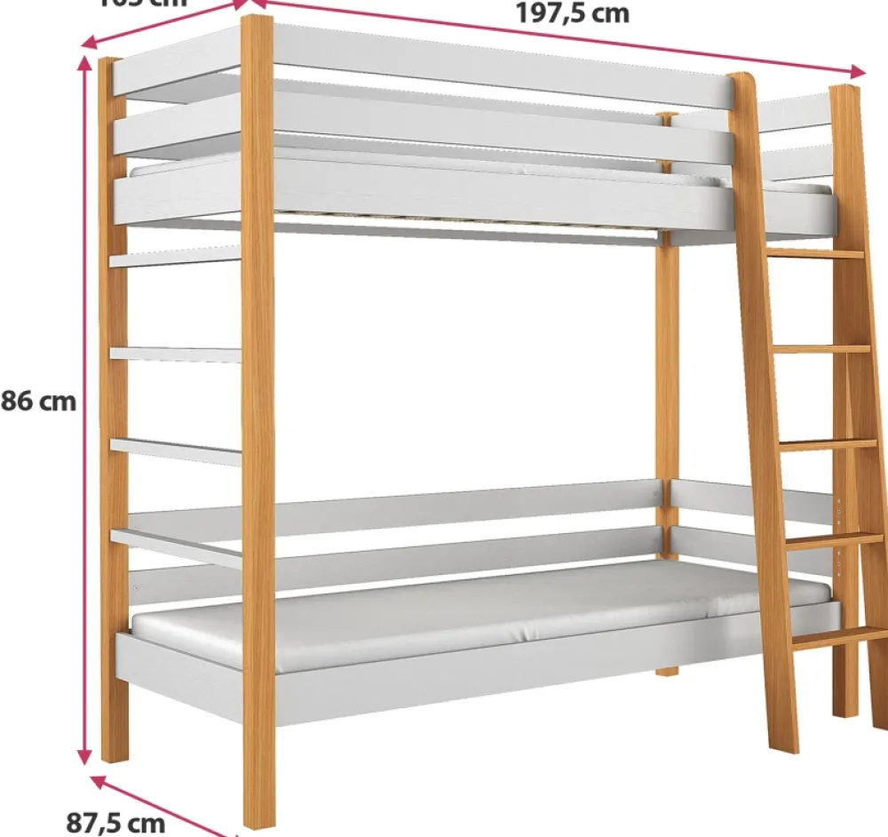 Dzięki solidnemu wykonaniu i przemyślanej konstrukcji, łóżko piętrowe z drewna sosnowego jest idealnym wyborem do każdego wnętrza, zapewniając wygodę i oszczędność miejsca. To funkcjonalny i stylowy element, który z pewnością doda uroku każdemu pokojowi, stając się centralnym punktem aranżacji.