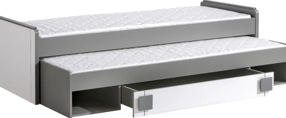 - Podwójne łóżko wysuwane GROOVY o powierzchni spania 80 × 200 cm oraz 80 × 195 cm. Wyposażone zostało w pojemną szufladę pełniącą role pojemnika na pościel. Całość wykonana z płyty laminowanej o grubości 16 mm oraz 32 mm.