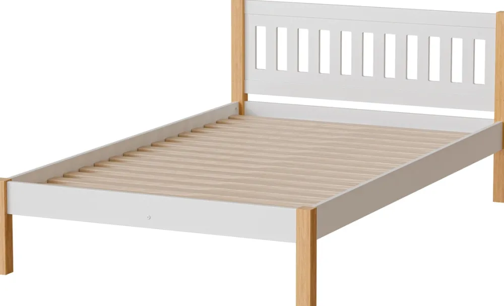 Łóżko wyposażone jest w stelaż listwowy, dołączony do zestawu, co zapewnia stabilne podparcie materaca oraz odpowiednią cyrkulację powietrza. Dzięki temu sen jest nie tylko wygodniejszy, ale także zdrowszy, ponieważ materac zachowuje swoje właściwości na dłużej. Stelaż wspiera równomierne rozłożenie ciężaru, co przekłada się na komfortowy i regenerujący wypoczynek każdej nocy.