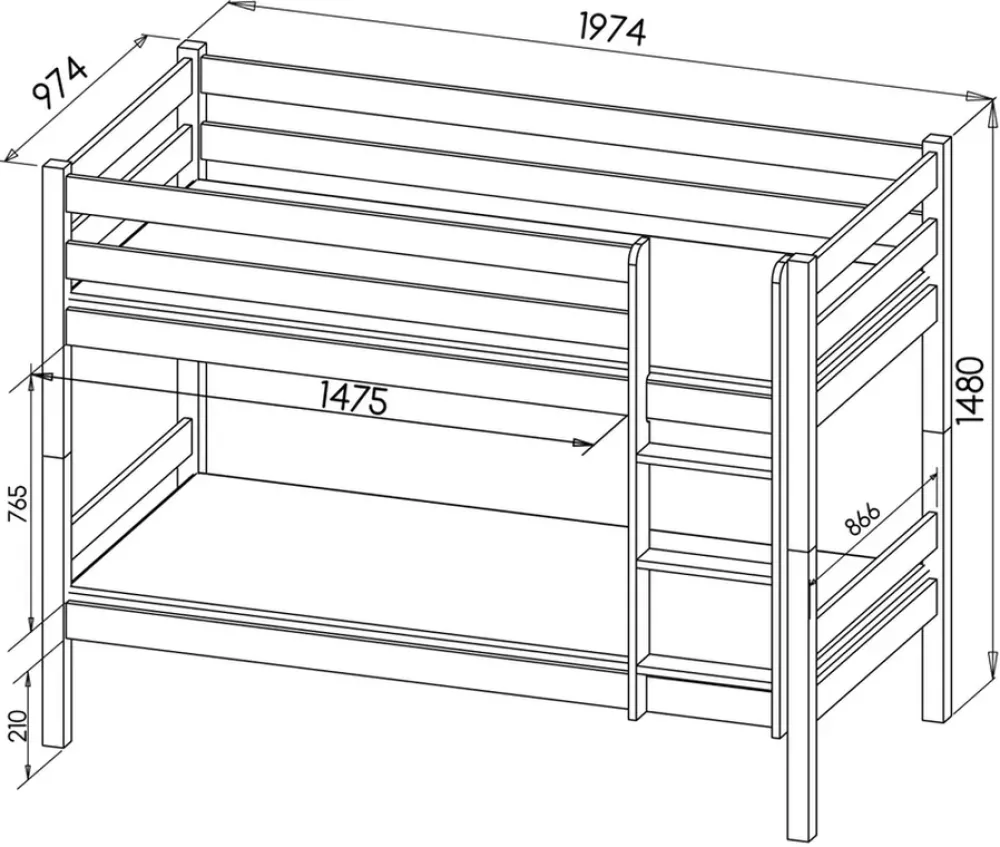 - Łóżko zostało wyposażone w stelaże listewkowe z miejscem na materace o powierzchni 90×190 cm.