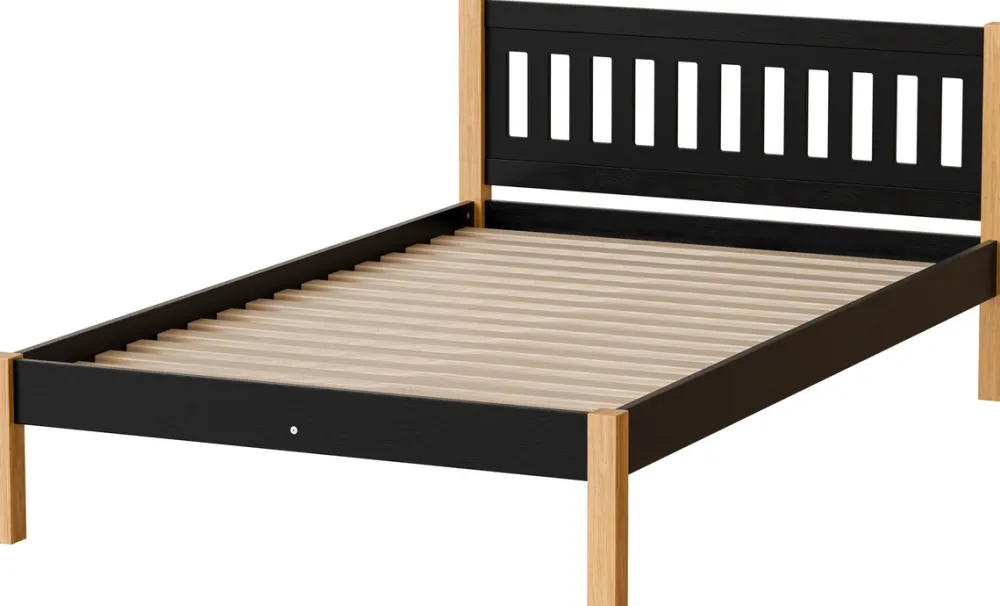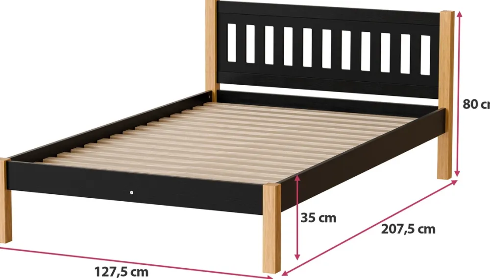 - Łóżko zostało wyposażone w stelaż listewkowy z miejscem na materac o powierzchni 120×200 cm. W zestawie z łóżkiem nie znajduje się materac.