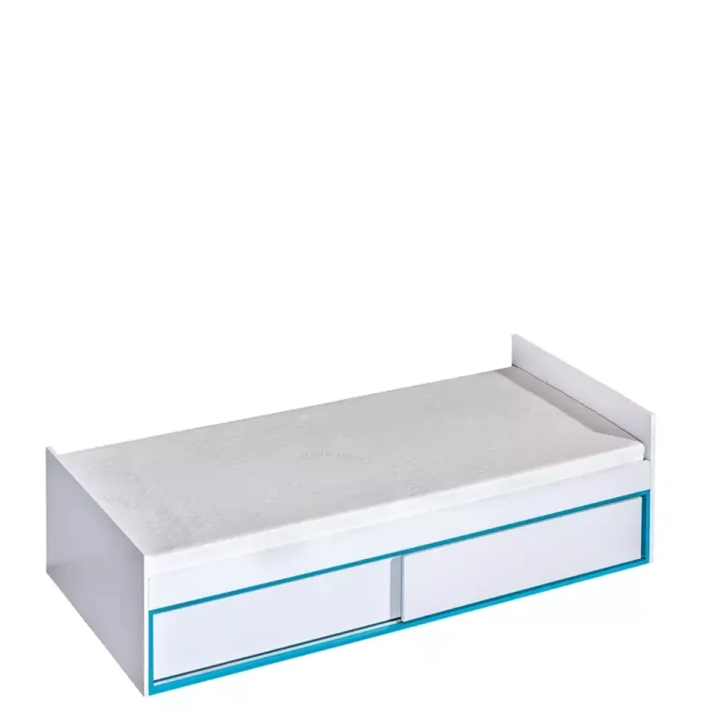 Łóżko z kolekcji nowoczesnych mebli systemowych TRAFIKO. Łóżko posiada powierzchnię spania o rozmiarze 90 cm x 200 cm, gwarantując komfortowy wypoczynek dla jednej osoby, a przy tym nie zajmując wiele miejsca. Łóżko dodatkowo posiada schowek na akcesoria sypialniane na samym spodzie z drzwiami przesuwnymi, dzięki czemu zyskasz szybki i prosty dostęp do najpotrzebniejszych rzeczy.