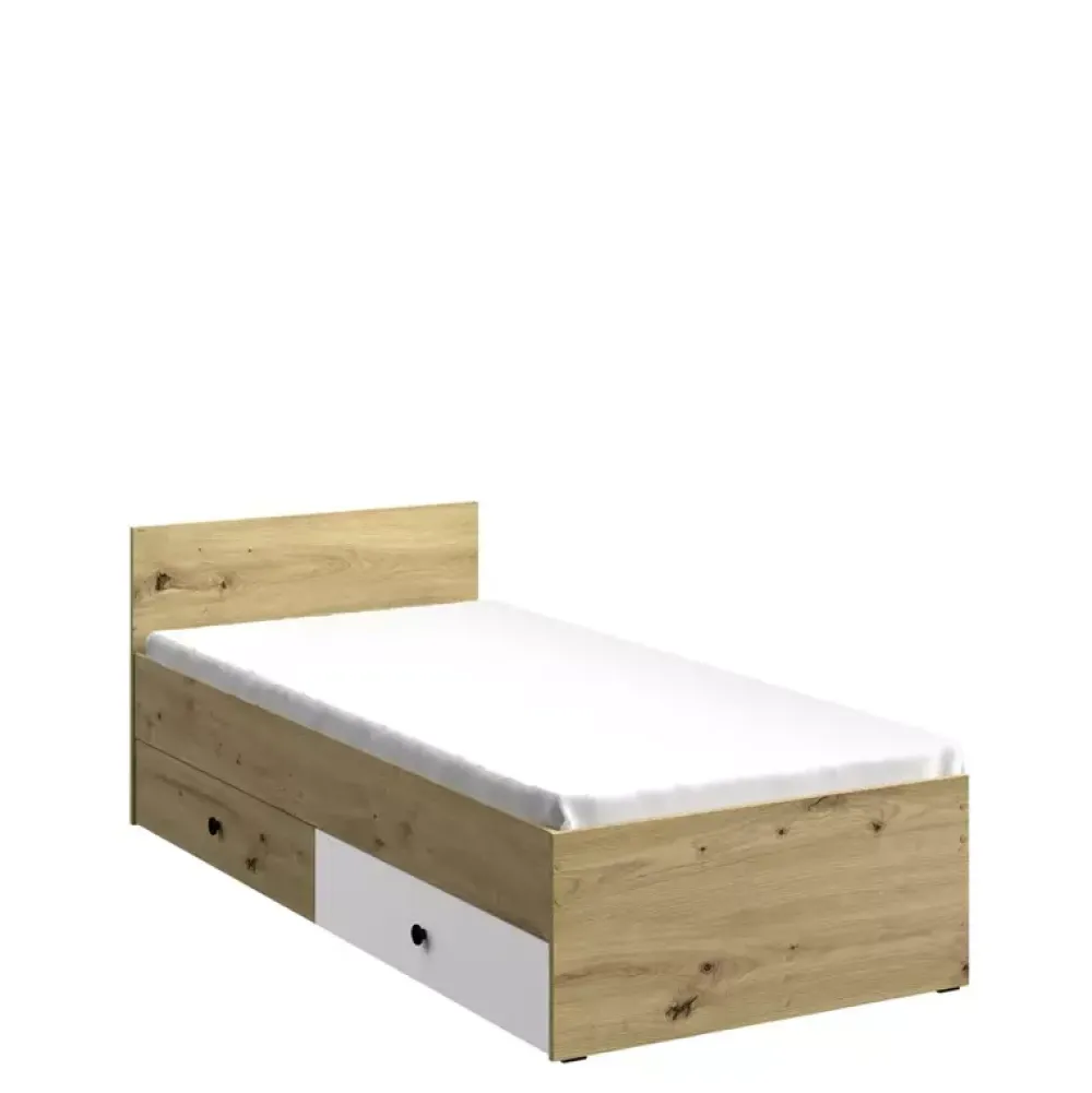 Łóżko młodzieżowe Dąb Artisan z kolekcji MONACO z dwoma szufladami stanowi stylowe oraz praktyczne rozwiązanie dla pokoju młodzieżowego. Dzięki pojemnym szufladą zyskujemy prosty, wygodny oraz szybki dostęp do naszych kołder, prześcieradeł, koców oraz rozmaitych akcesoriów. Łóżko mimo kompaktowych rozmiarów oferuje ergonomiczną powierzchnię dla snu. Łóżko spodoba się zarówno młodzieży, jak i rodzicom.