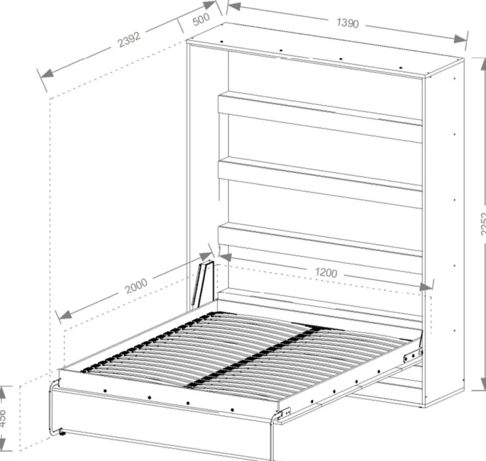 Wytrzymały stelaż zapewnia stabilność i wygodę podczas snu, a przestronna powierzchnia spania gwarantuje doskonały wypoczynek. Dzięki prostemu mechanizmowi składania łóżko błyskawicznie zmienia się w elegancką zabudowę.