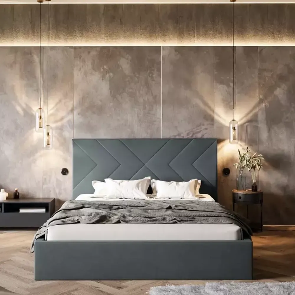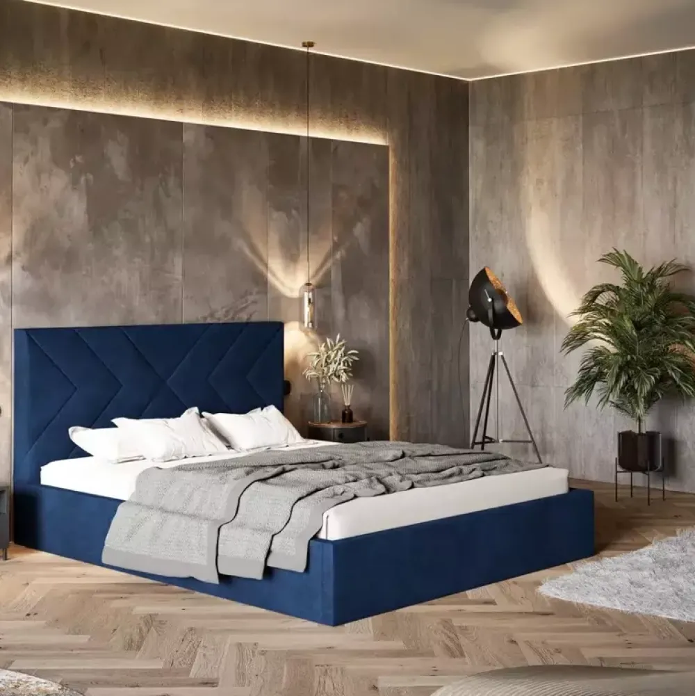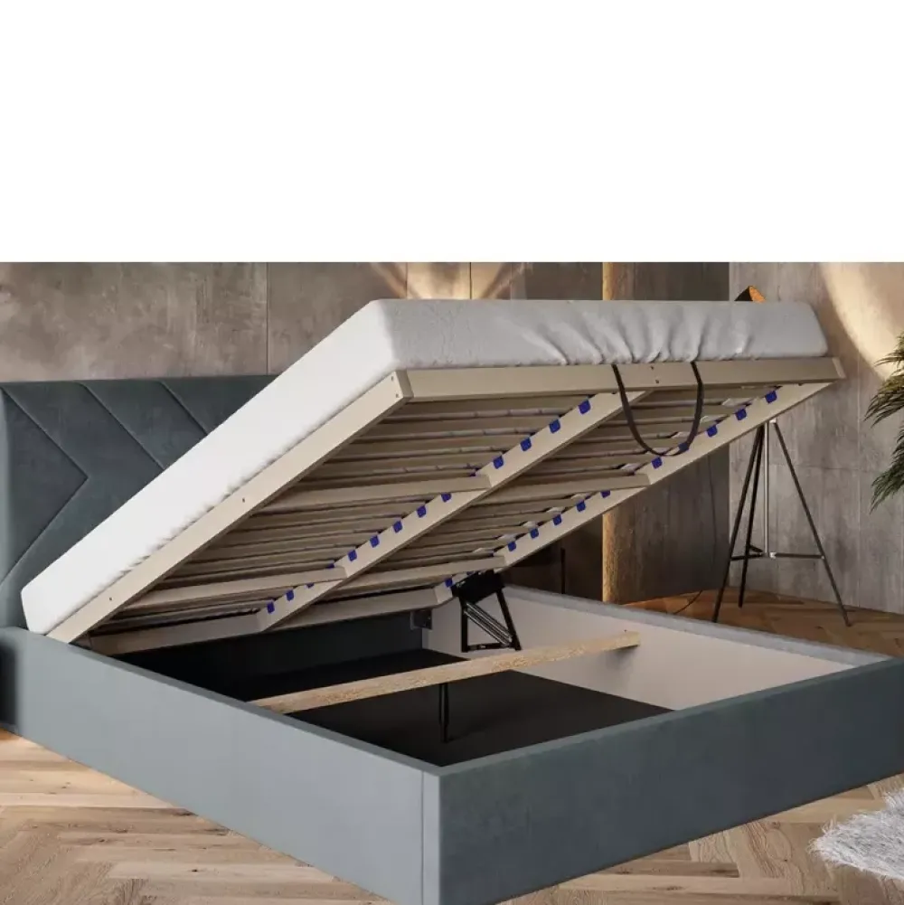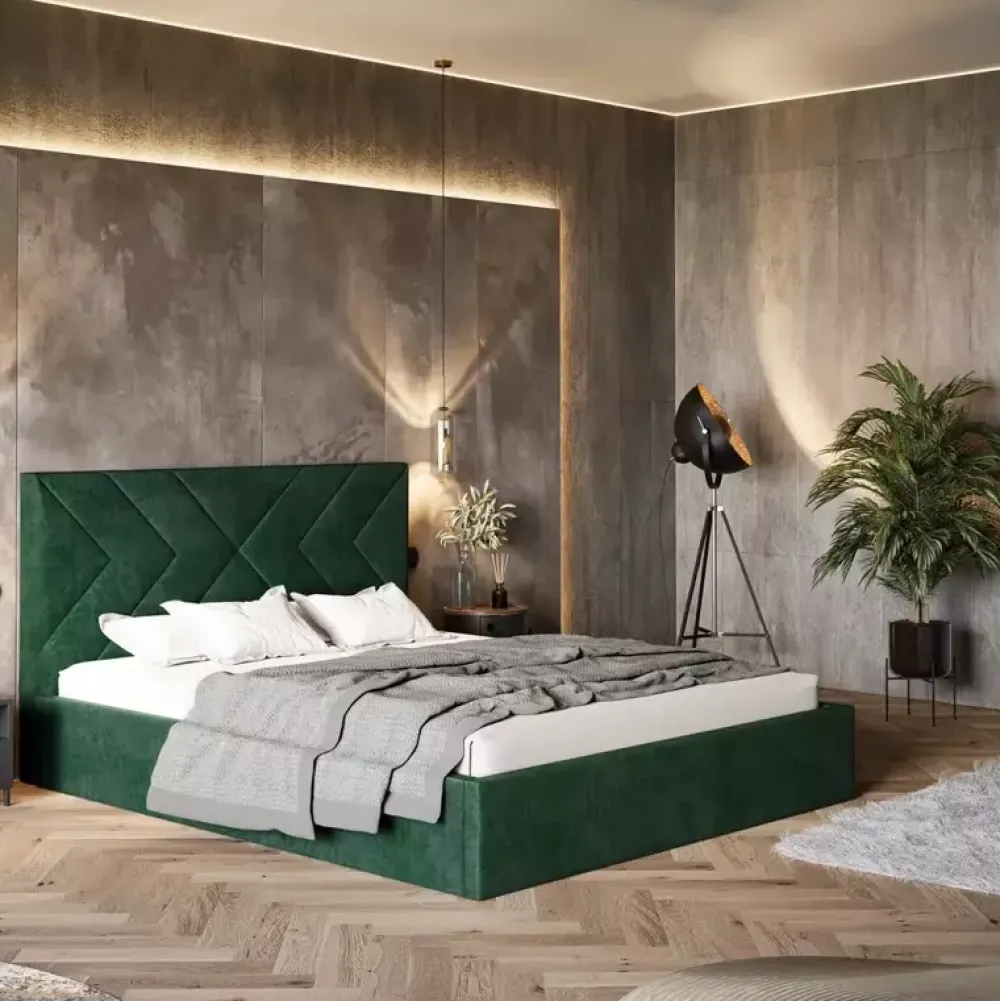 - Łóżko z miękkim zagłówkiem ozdobionym eleganckim wzorem. Solidna konstrukcja w połączeniu z szeroką ofertą dostępnych tkanin będzie stanowić ozdobę waszych wnętrz. W konfiguratorze znajdą państwo możliwość zmiany stelaża na metalowy, z automatem gazowym.