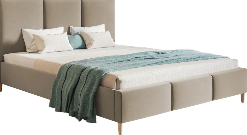 Tapicerka łóżka jest wykonana z wysokiej jakości tkanin, które są dostępne w wielu wzorach i kolorach, dzięki czemu można łatwo dopasować łóżko do indywidualnych preferencji oraz wystroju sypialni. Ozdobne przeszycia dodają łóżku wyrafinowanego wyglądu, podkreślając jego elegancki charakter i dbałość o detale.
