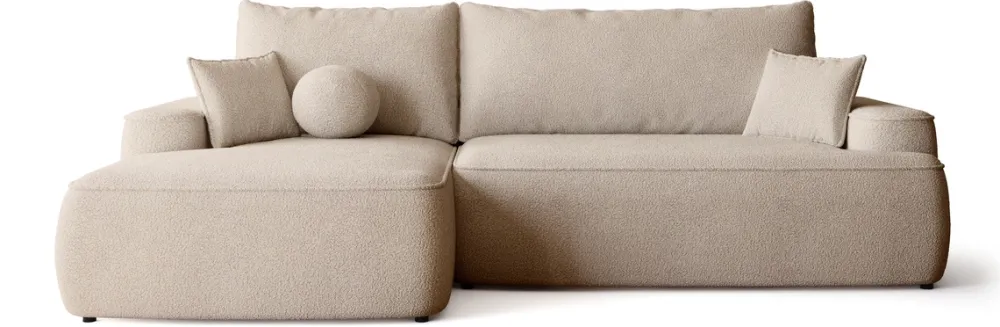 Rozkładana powierzchnia spania sprawia, że narożnik jest idealnym rozwiązaniem do mniejszych mieszkań lub salonów, w których liczy się każdy metr przestrzeni. Wbudowany pojemnik na pościel pozwoli Ci szybko schować koce i poduszki, zachowując porządek bez wysiłku.