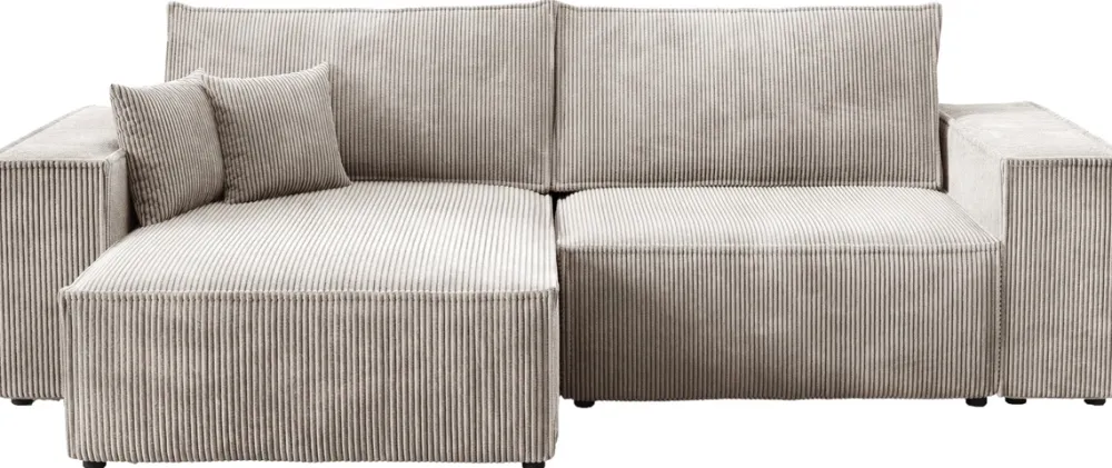 Sztruksowy narożnik z funkcją spania PEDRO to nowoczesny design połączony z innowacyjnymi rozwiązaniami, które sprawią, że stanie się on centralnym punktem każdego salonu. Zapraszamy do wypróbowania i zakochania się w każdym detalu tego wyjątkowego mebla.