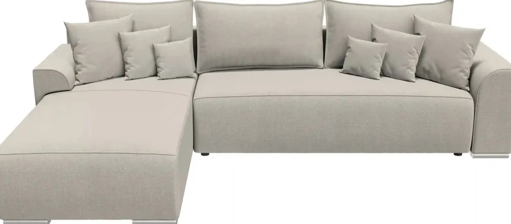 - Beżowy narożnik do salonu SYDNEY z pewnością przedefiniuje na nowo słowo styl. Narożnik z funkcją spania posiada pojemnik na pościel ukryty pod siedziskiem. Razem z narożnikiem dołączony jest komplet poduch. Nóżki mebla są metalowe.