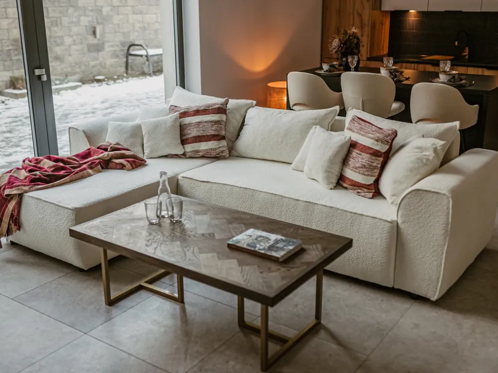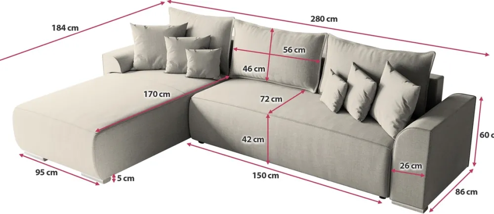 - Uniwersalna konstrukcja kanapy narożnej pozwoli zdecydować o finalnym ustawieniu podczas montażu.