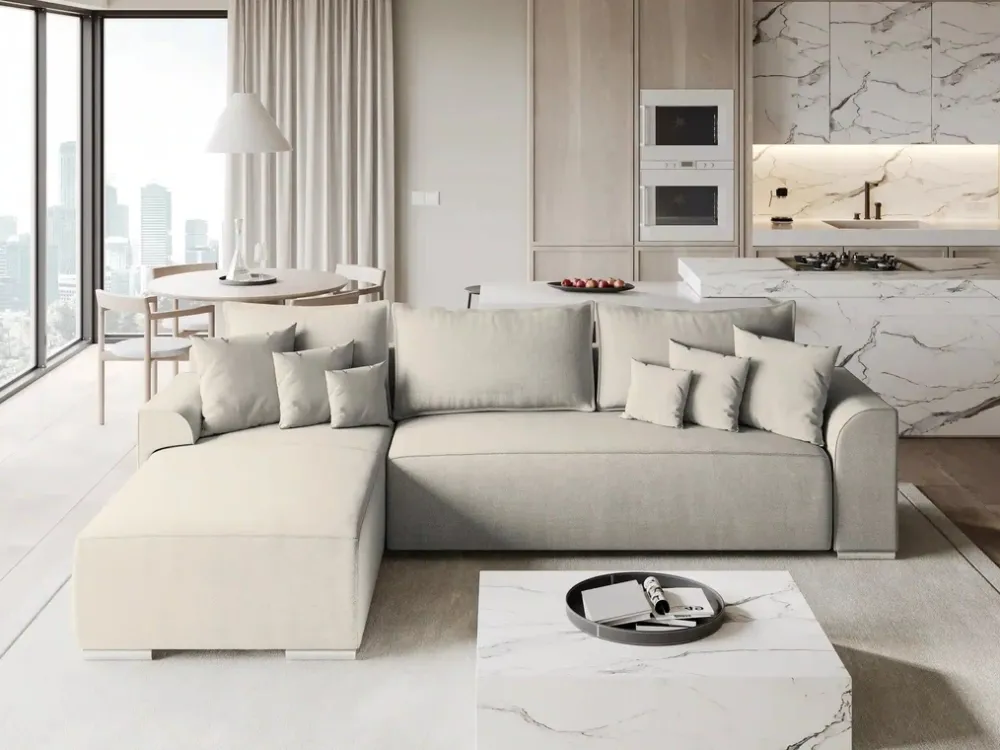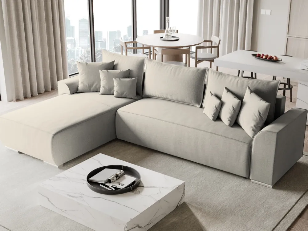 Współczesny salon zasługuje na nowoczesny narożnik, który jest zarówno elegancki, jak i praktyczny. Prezentowany rozkładany narożnik z funkcją spania SYDNEY łączy w sobie wszystkie te cechy, stając się sercem każdego pomieszczenia.