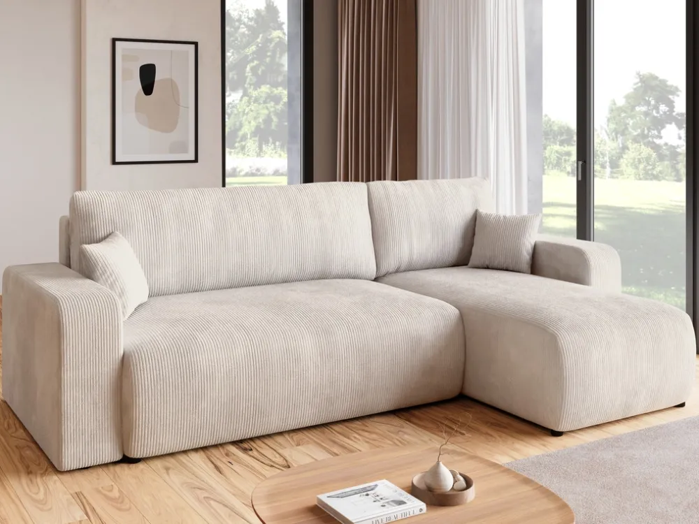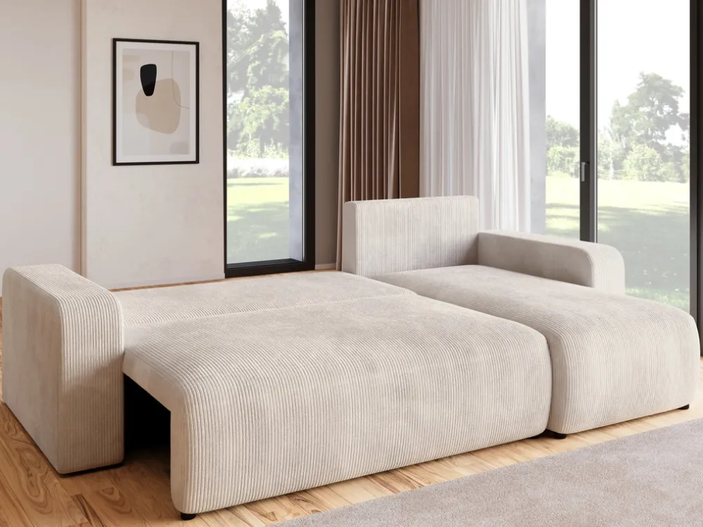 Meble Dla Dzieci|Meble Młodzieżowe>BROMARKT Beżowy rozkładany narożnik do salonu z funkcją spania PUMI