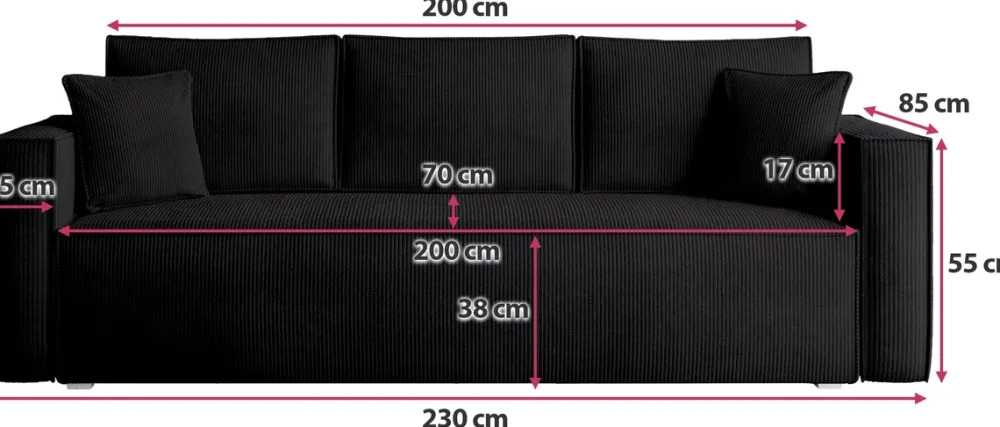 Nasza sofa została wykończona luksusową sztruksową tkaniną, która nie tylko dodaje elegancji, ale również przyjemności w dotyku. To materiał o wysokiej jakości, który jest trwały i łatwy w utrzymaniu czystości. Dodatkowo, dostępna jest w różnych kolorach, dzięki czemu możesz dopasować ją do wystroju swojego salonu.