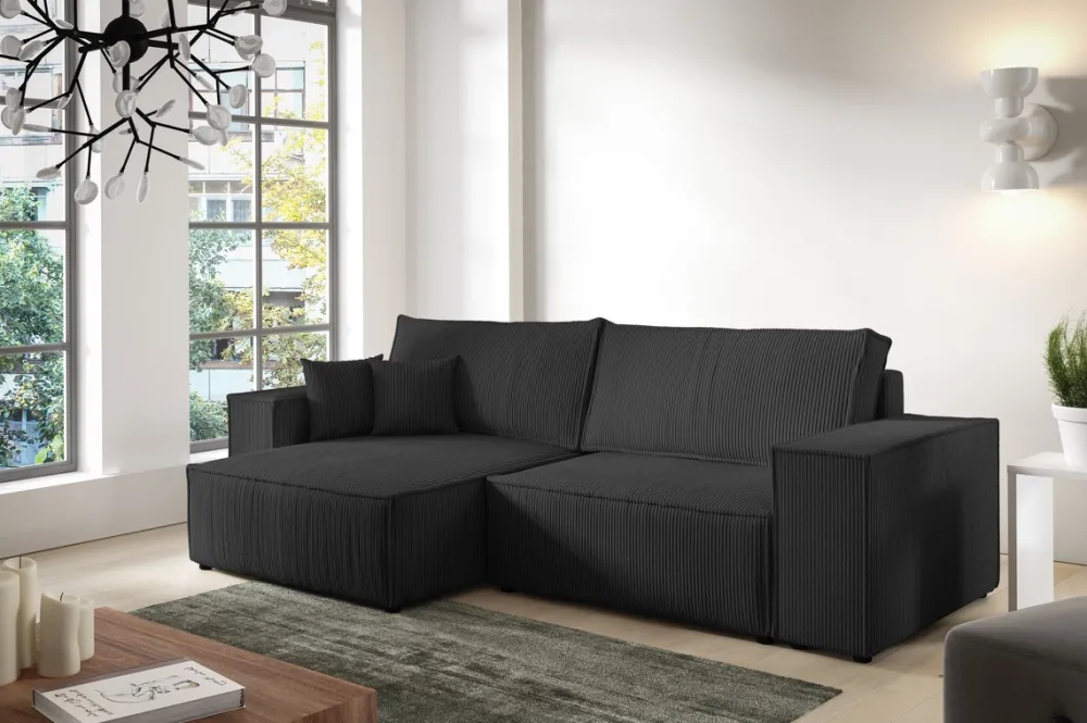 Sztruksowy narożnik z funkcją spania PEDRO to nowoczesny design połączony z innowacyjnymi rozwiązaniami, które sprawią, że stanie się on centralnym punktem każdego salonu. Zapraszamy do wypróbowania i zakochania się w każdym detalu tego wyjątkowego mebla.