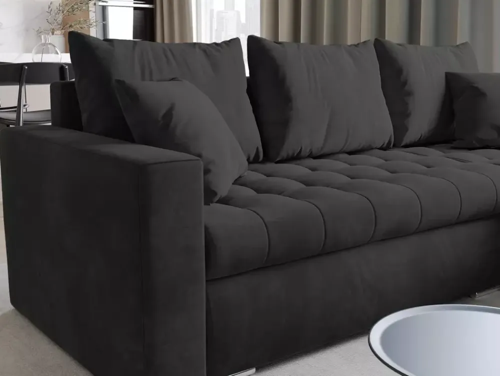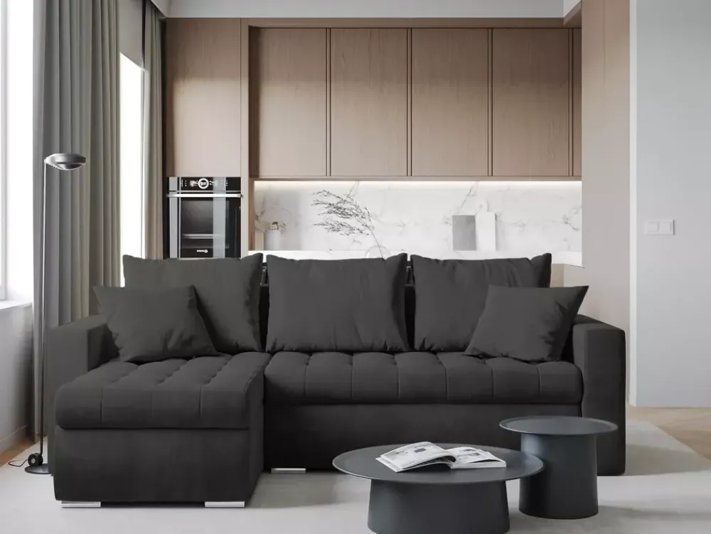 Prezentujemy nowoczesny narożnik do salonu LUIS, który łączy w sobie styl i praktyczność. Wyposażony w funkcję spania o wymiarach 125×200 cm, ten mebel stanowi idealne rozwiązanie zarówno dla codziennego relaksu, jak i jako komfortowe miejsce do spania dla gości. Dzięki intuicyjnemu mechanizmowi rozkładania DL zmiana narożnika w łóżko jest szybka i bezproblemowa.