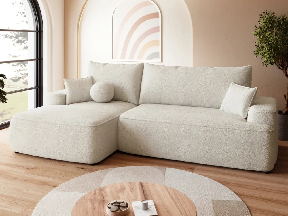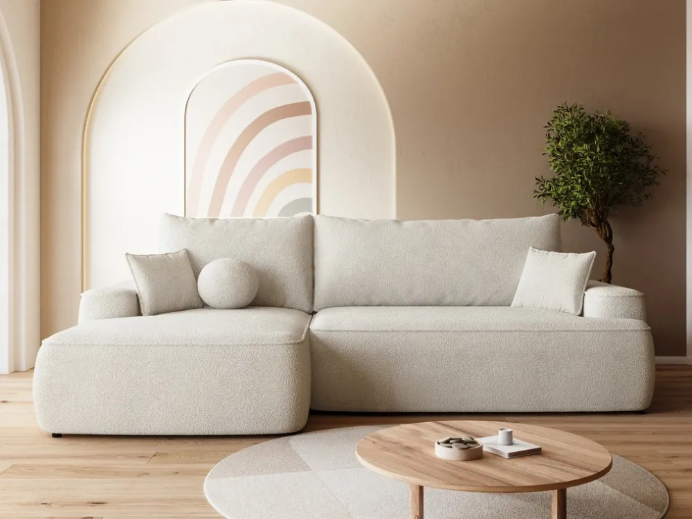 Meble Dla Dzieci|Meble Młodzieżowe>BROMARKT Kremowy narożnik do salonu z funkcją spania CARMELLO boucle