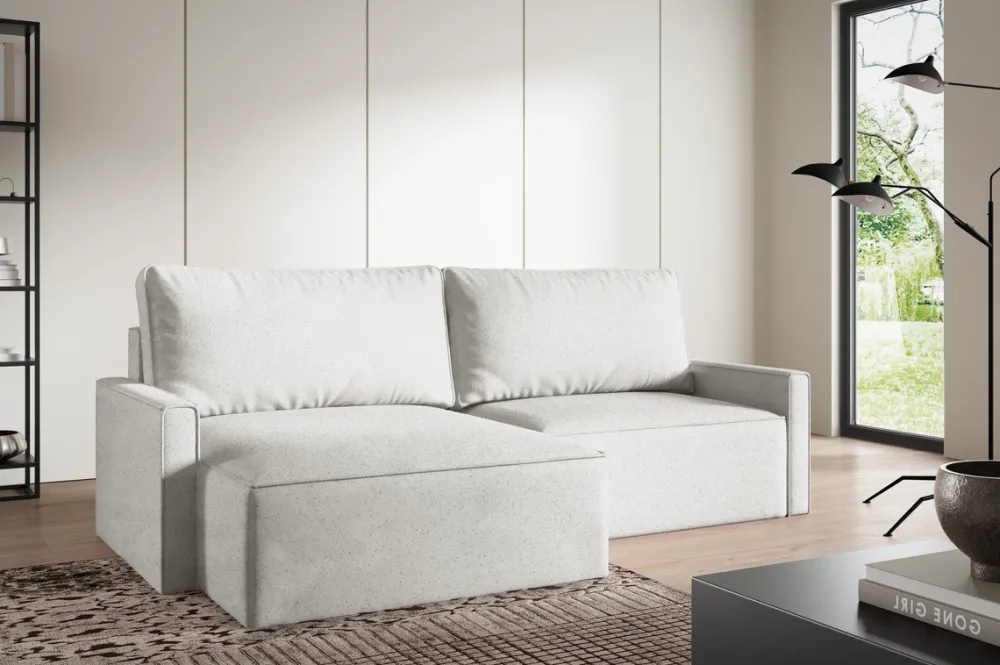 Nowoczesny narożnik boucle NORBERT – komfortowy i funkcjonalny mebel z funkcją spania