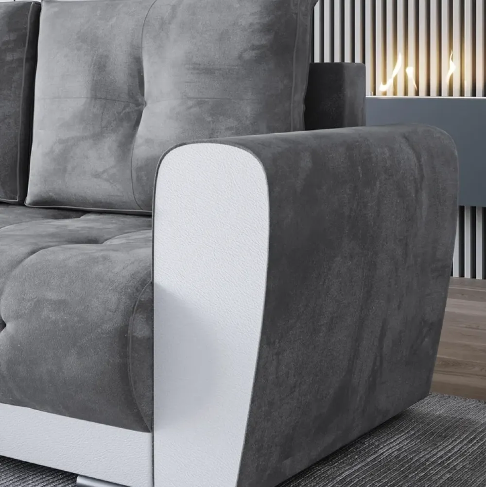 Podkreśl swoje poczucie stylu z naszą kanapą narożną do salonu, która odzwierciedla najnowsze trendy w designie. Jej nowoczesna stylistyka to wyrafinowana kombinacja prostych linii i eleganckich detali, które doda elegancji każdemu wnętrzu.