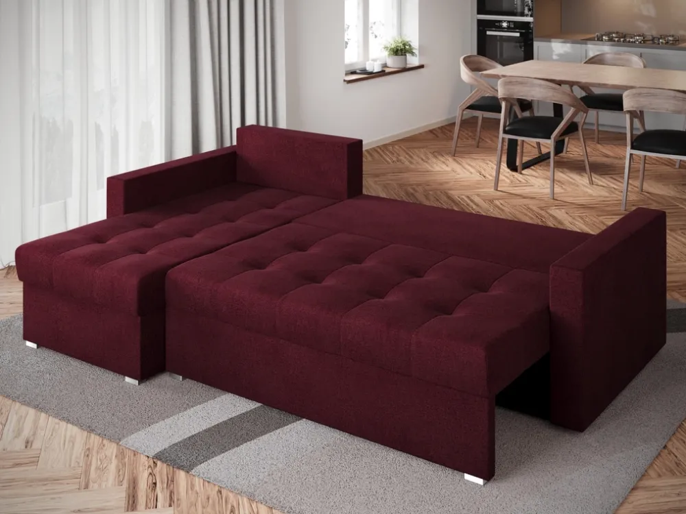 Nasz narożnik został zaprojektowany z myślą o maksymalnym wykorzystaniu przestrzeni. Wyposażony w funkcję spania o wymiarach 120×200 cm, idealnie sprawdzi się jako dodatkowe miejsce do spania dla gości. Narożnik rozkłada się za pomocą pociągnięcia siedziska do siebie.