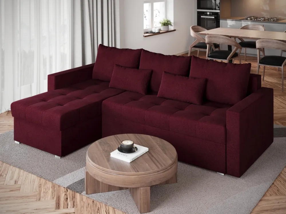 - Narożnik z funkcją spania 120×200 cm. Posiada pojemnik na pościel pod siedziskiem, siedzisko wykonane na bazie pianki PUR oraz tapicerowane plecy, dzięki którym może stanąć nawet pośrodku salonu. Narożnik jest dostępny w wielu kolorach i rodzajach tkanin.