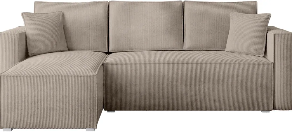 Narożnik posiada możliwość zmontowania w orientacji lewostronnej lub prawostronnej. Pozwala to na dostosowanie mebla do układu pomieszczenia, dzięki czemu podczas przemeblowania, wystarczy przełożyć wysuniętą część narożnika na drugą stronę, aby idealnie wpasowywał się w aranżacje.