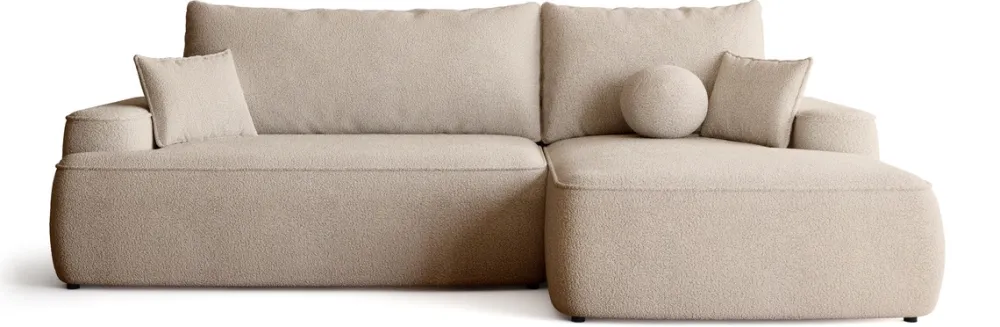 Rozkładana powierzchnia spania sprawia, że narożnik jest idealnym rozwiązaniem do mniejszych mieszkań lub salonów, w których liczy się każdy metr przestrzeni. Wbudowany pojemnik na pościel pozwoli Ci szybko schować koce i poduszki, zachowując porządek bez wysiłku.