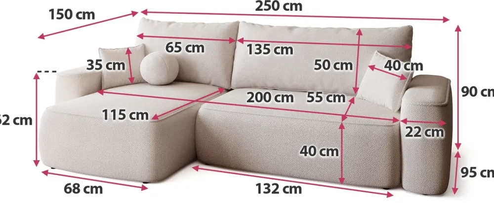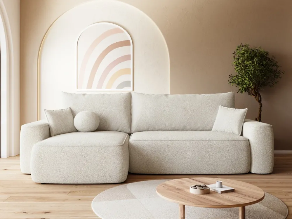 Meble Dla Dzieci|Meble Młodzieżowe>BROMARKT Nowoczesny narożnik boucle z funkcją spania do salonu CARMELLO DUO