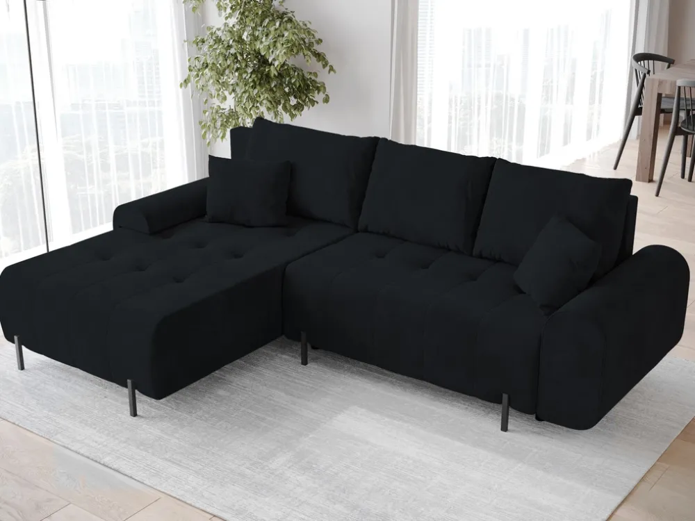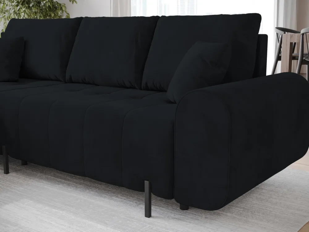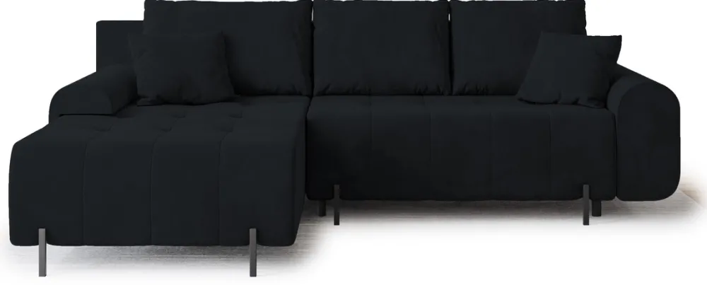 Pod siedziskiem narożnika znajduje się pojemnik na pościel, który umożliwia łatwe i dyskretne przechowywanie pościeli lub innych przedmiotów. Jest to idealne rozwiązanie dla tych, którzy cenią sobie porządek i efektywne wykorzystanie przestrzeni w swoim salonie.