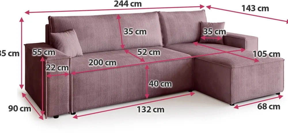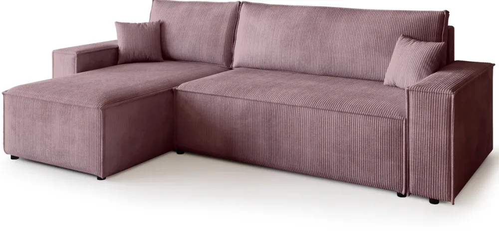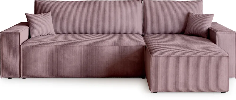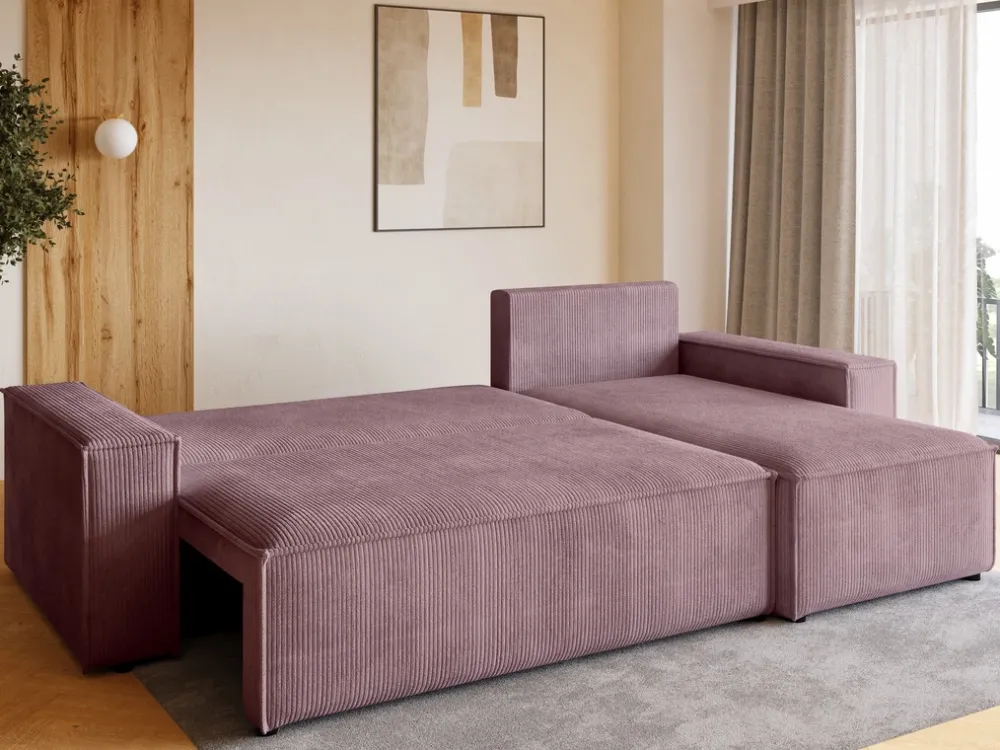 Zaprojektowany z myślą o codziennym komforcie i funkcjonalności, ten narożnik stanie się ulubionym miejscem wypoczynku w Twoim salonie. Siedzisko oparte na sprężynach falistych i piance PUR zapewnia idealne podparcie, a miękka sztruksowa tkanina otula ciało przyjemną fakturą. Dzięki funkcji spania i pojemnikowi na pościel zyskujesz nie tylko wygodne łóżko, ale i dodatkowe miejsce do przechowywania.