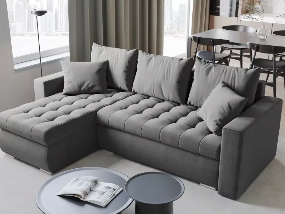 Pod siedziskiem tego narożnika znajduje się głęboki pojemnik na pościel, który oferuje nie tylko dodatkowe miejsce do przechowywania, ale także pomaga zachować porządek w Twoim salonie. Jest to idealne rozwiązanie na schowanie zbędnych rzeczy, które chcesz mieć pod ręką, ale poza zasięgiem wzroku.