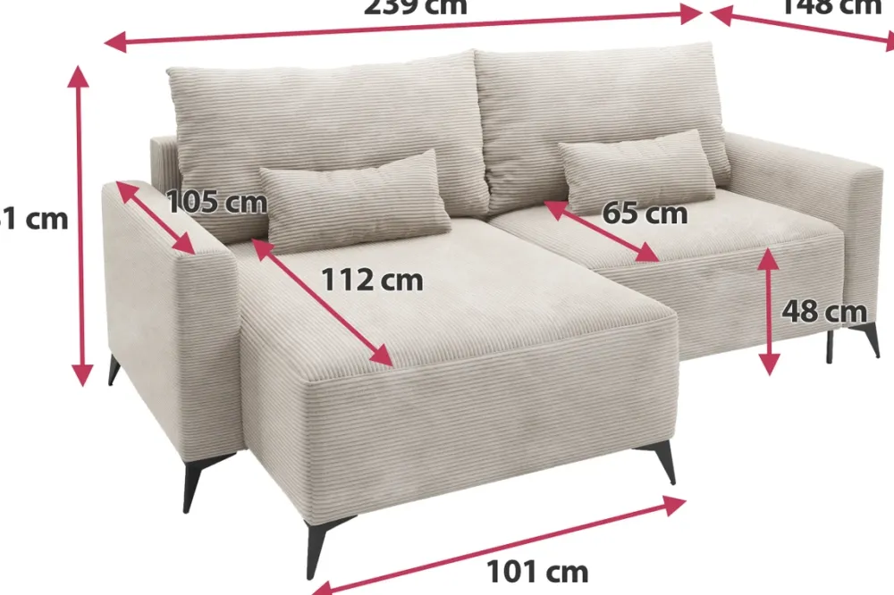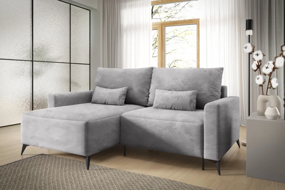 Meble Dla Dzieci|Meble Młodzieżowe>BROMARKT Szara kanapa narożna z funkcją spania na nóżkach rozkładana LORENZO