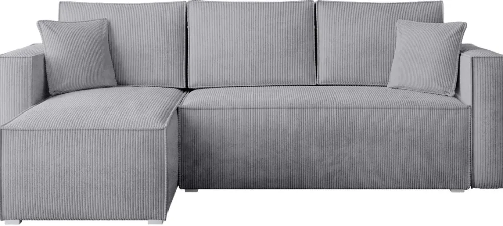 - Sztruksowy narożnik z funkcją spania przedstawiony w ofercie wykonany został w tkaninie Poso 55.