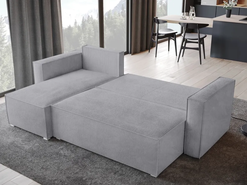 - Sztruksowy narożnik z funkcją spania TOP. Rozkładany narożnik obity został sztruksową tkaniną Poso. Narożnik do salonu posiada funkcję spania, pojemnik na pościel oraz komplet poduch. Nóżki narożnika wykonane są z tworzywa sztucznego.