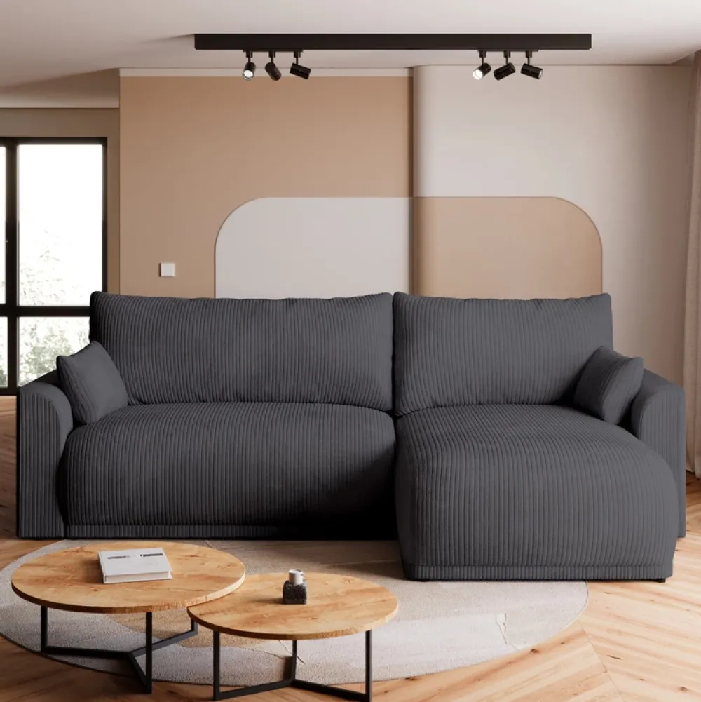Meble Dla Dzieci|Meble Młodzieżowe>BROMARKT Szara rozkładana kanapa narożna do salonu z funkcją spania MORENO