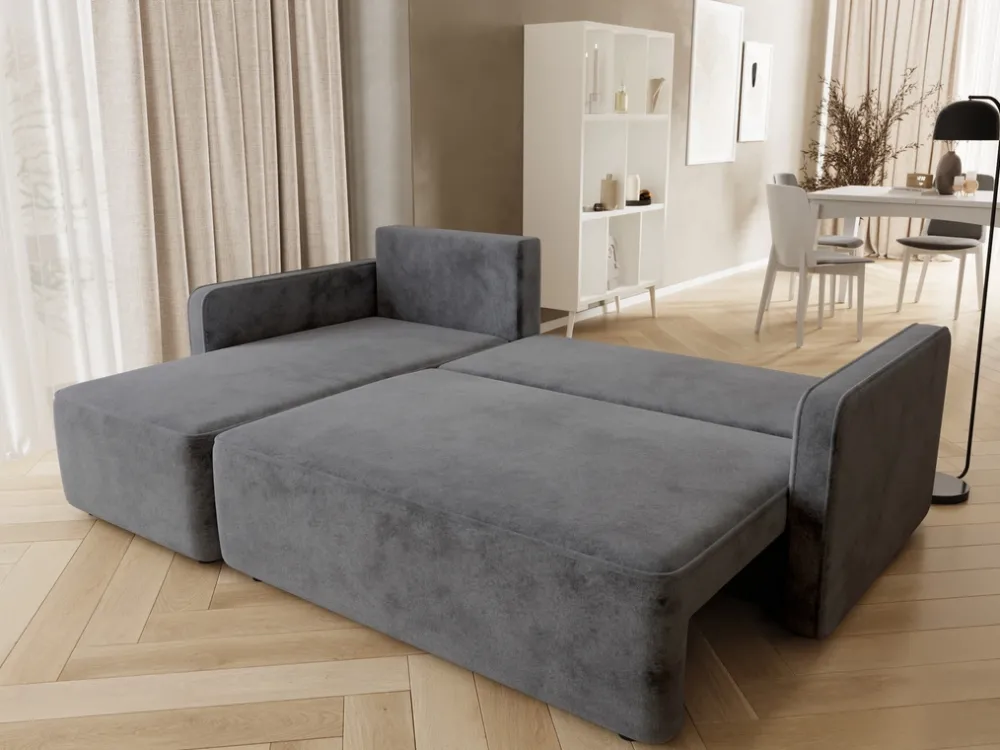 Automat DL umożliwia błyskawiczne rozłożenie narożnika, co jest nieocenione, gdy potrzebujesz dodatkowego miejsca do spania. Zintegrowany pojemnik pozwala przechować pościel w jednym miejscu – wygodnie i bez bałaganu.