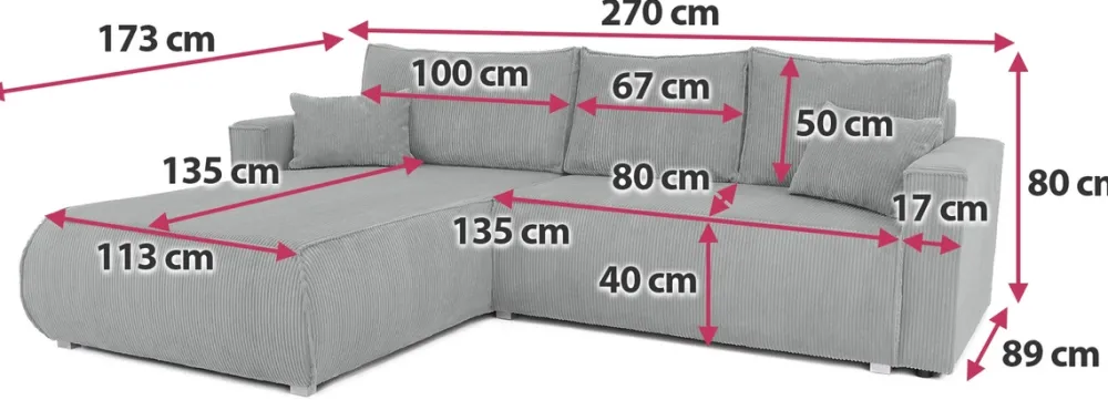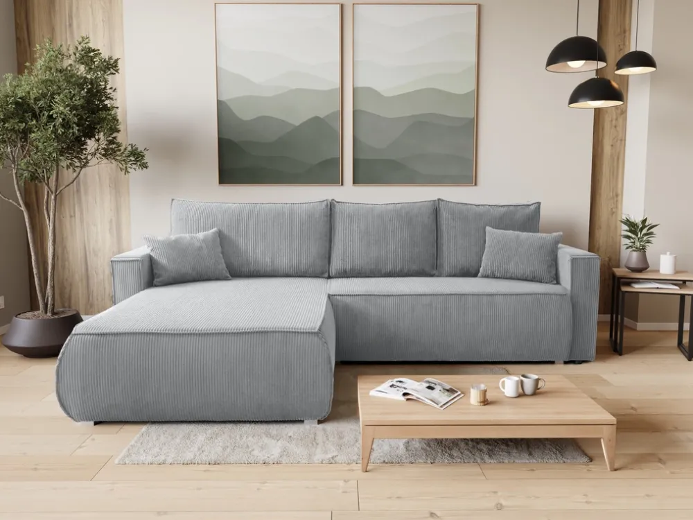 Meble Dla Dzieci|Meble Młodzieżowe>BROMARKT Szary sztruksowy narożnik z funkcją spania i pojemnikiem HAVANA