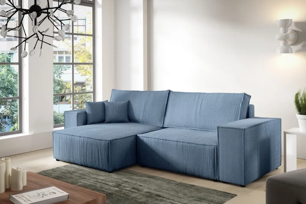 Sztruksowy narożnik z funkcją spania PEDRO to nowoczesny design połączony z innowacyjnymi rozwiązaniami, które sprawią, że stanie się on centralnym punktem każdego salonu. Zapraszamy do wypróbowania i zakochania się w każdym detalu tego wyjątkowego mebla.