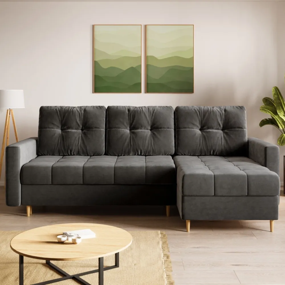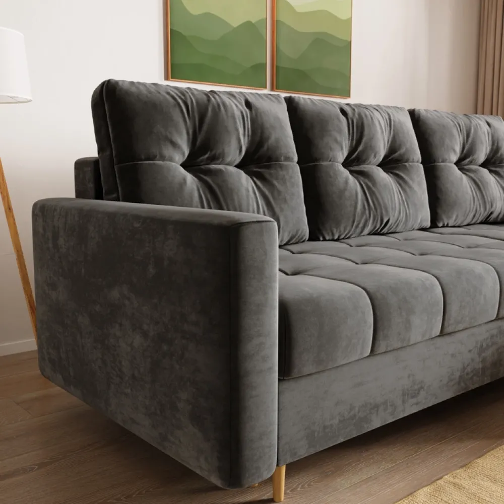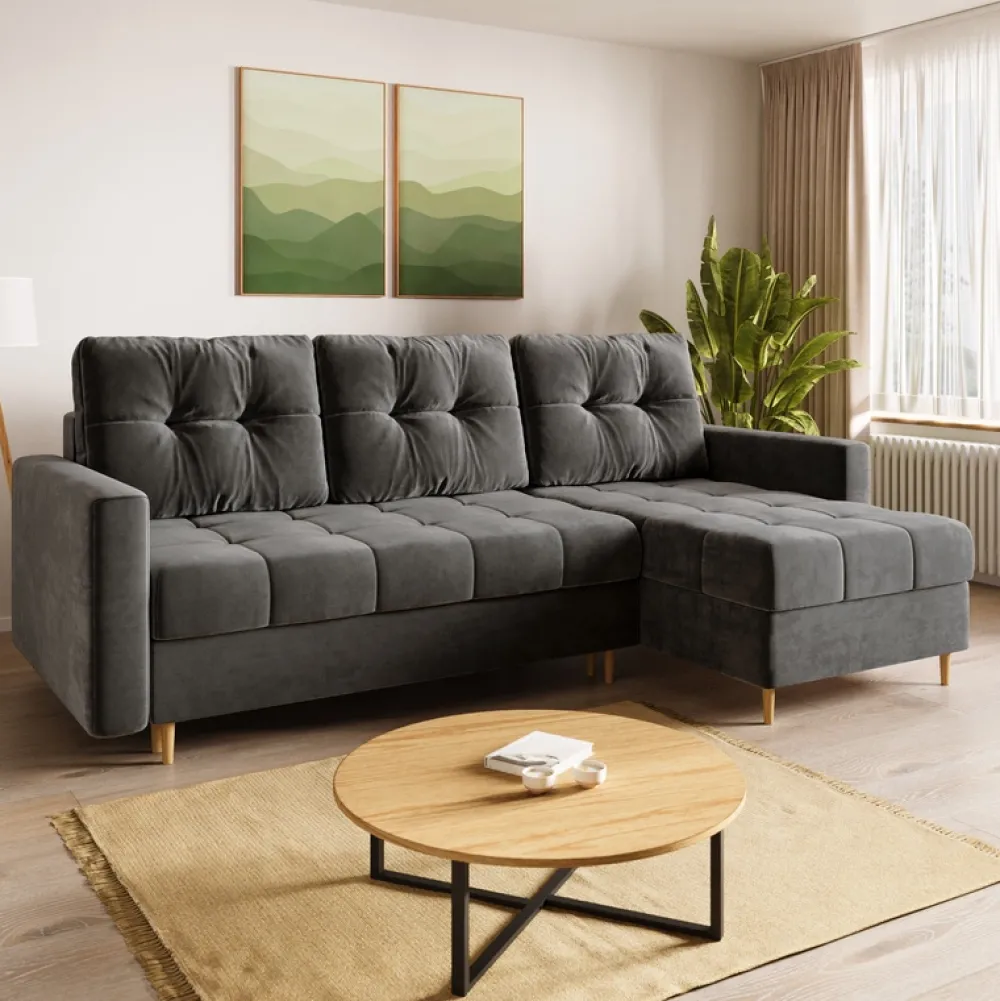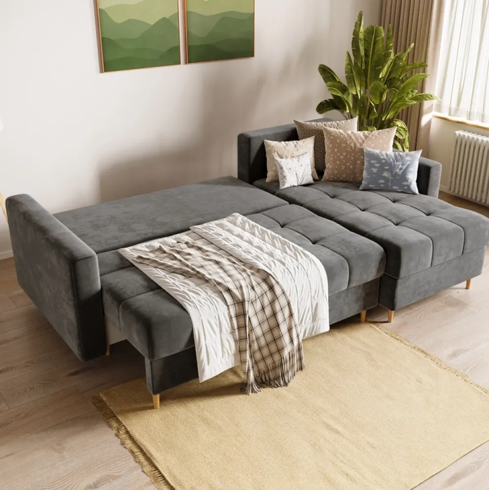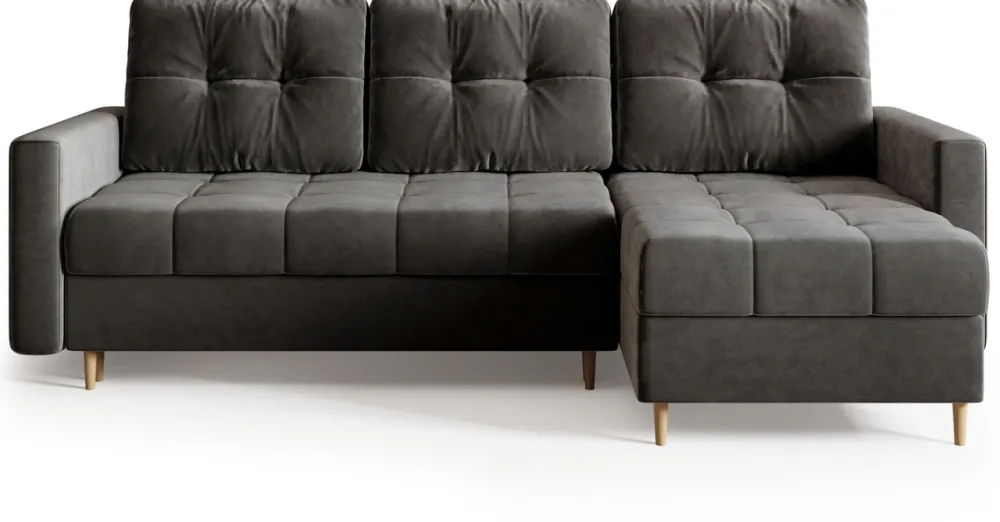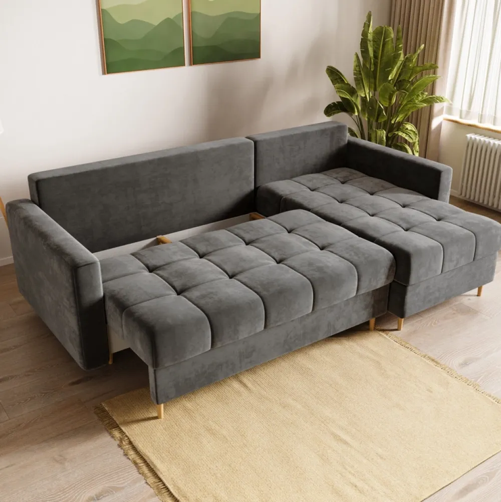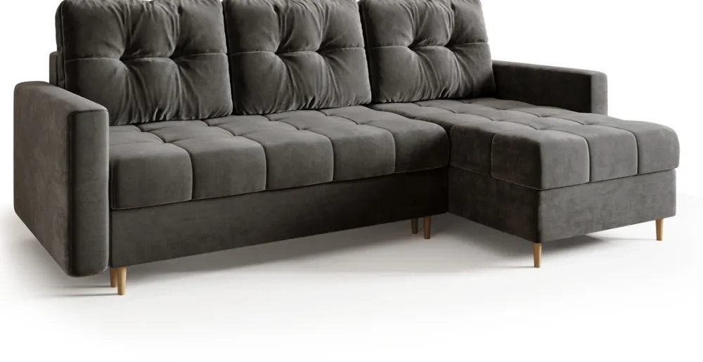 Meble Dla Dzieci|Meble Młodzieżowe>BROMARKT Welurowy szary narożnik z funkcją spania i pojemnikiem na pościel LIZBONA