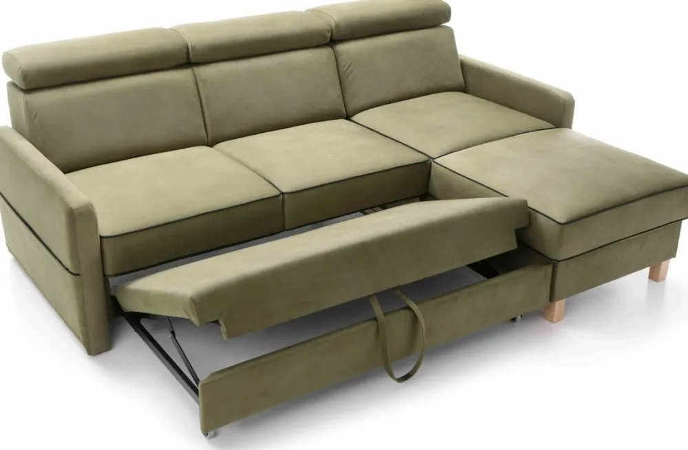 Funkcja spania to niezwykle praktyczne rozwiązanie, które sprawia, że narożnik jest idealny nie tylko do siedzenia, ale także do snu. W łatwy i szybki sposób można go przekształcić w pełnowymiarowe łóżko, idealne na nocleg gości.