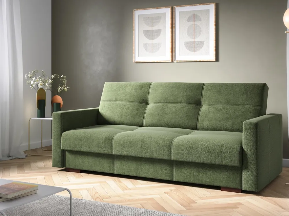Wersalka DIORA to propozycja, która doskonale odnajduje się w klasycznych aranżacjach salonów. Wyposażenie w funkcje rozkładania oraz pojemnik na pościel pozwoli ci zyskać dodatkowe miejsce do spania podczas wizyty gości. Pojemnik na pościel doskonale sprawdzi się do przechowywania kołder oraz poduszek. Wykonanie siedziska ze sprężyn bonell oraz pianki poliuretanowej gwarantuje bardzo wysoki poziom komfortu zarówno podczas siedzenia, jak i podczas snu.