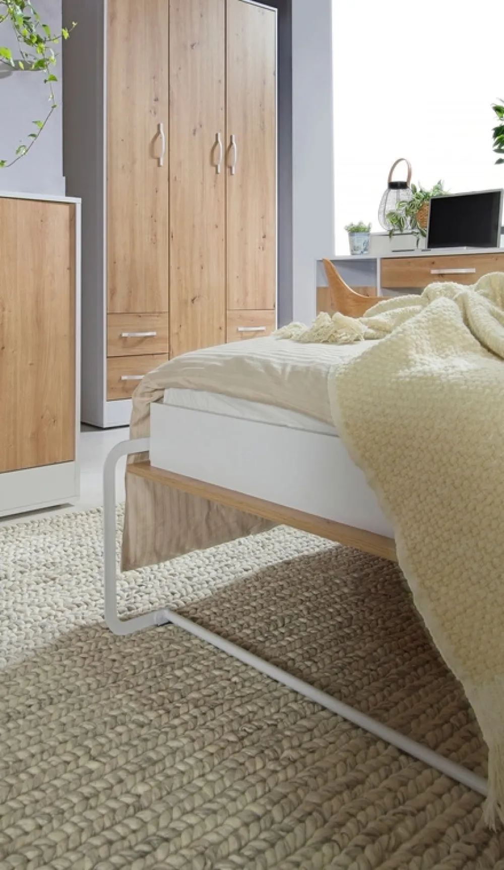 Powierzchnia spania 140×200 cm oferuje wygodę porównywalną z tradycyjnym łóżkiem. Solidny stelaż zapewnia odpowiednie podparcie i trwałość, dzięki czemu nocny wypoczynek jest niezakłócony, a mebel służy przez lata. To idealne rozwiązanie do sypialni, pokoju młodzieżowego czy małego mieszkania, gdzie liczy się każdy centymetr przestrzeni.