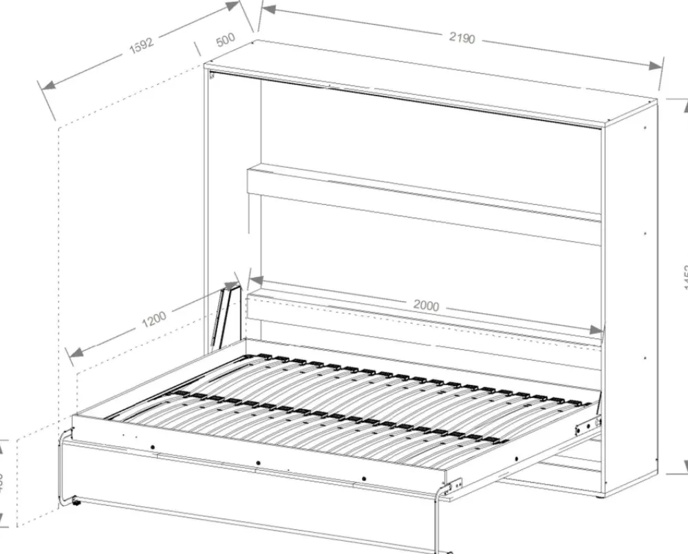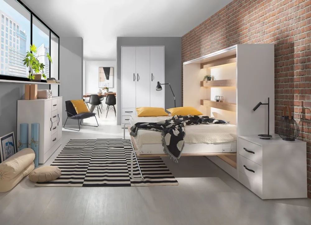 Konstrukcja pozioma to doskonałe rozwiązanie do wnętrz z niskim sufitem lub ograniczoną przestrzenią. Mebel pozostaje dyskretną i stylową częścią wnętrza w ciągu dnia, a wieczorem łatwo zamienia się w przestronne łóżko. Mechanizm składania działa płynnie i lekko, dzięki czemu codzienne użytkowanie jest komfortowe i bezproblemowe.