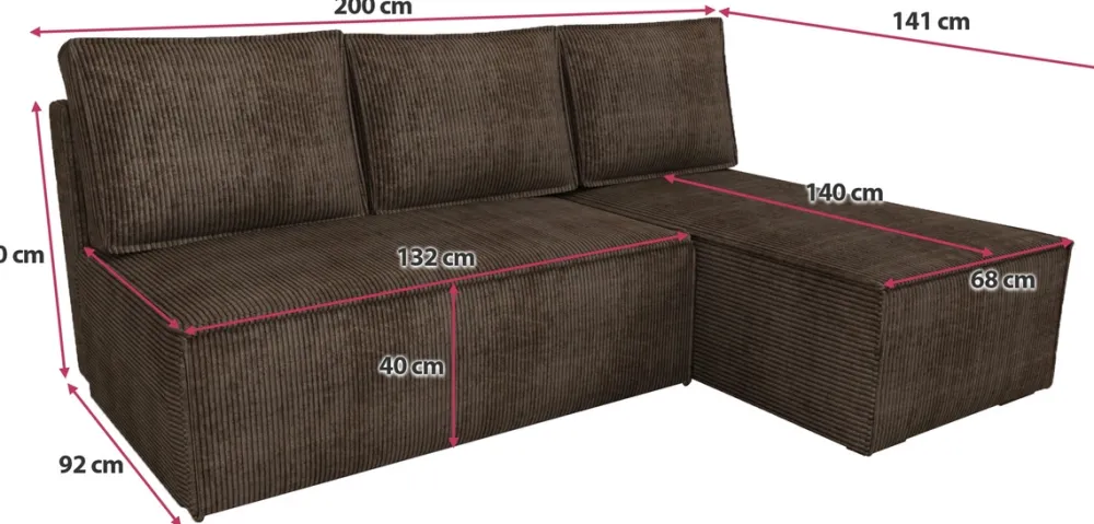 - Sztruksowy narożnik HECTOR posiada funkcję spania o powierzchni 138×200 cm, która jest rozkładana za pomocą sprężynowego automatu DL. Pod siedziskiem znajduje się pojemnik na pościel. Narożnik wykonany w sztruksowej tkaninie dostępny w wielu kolorach.